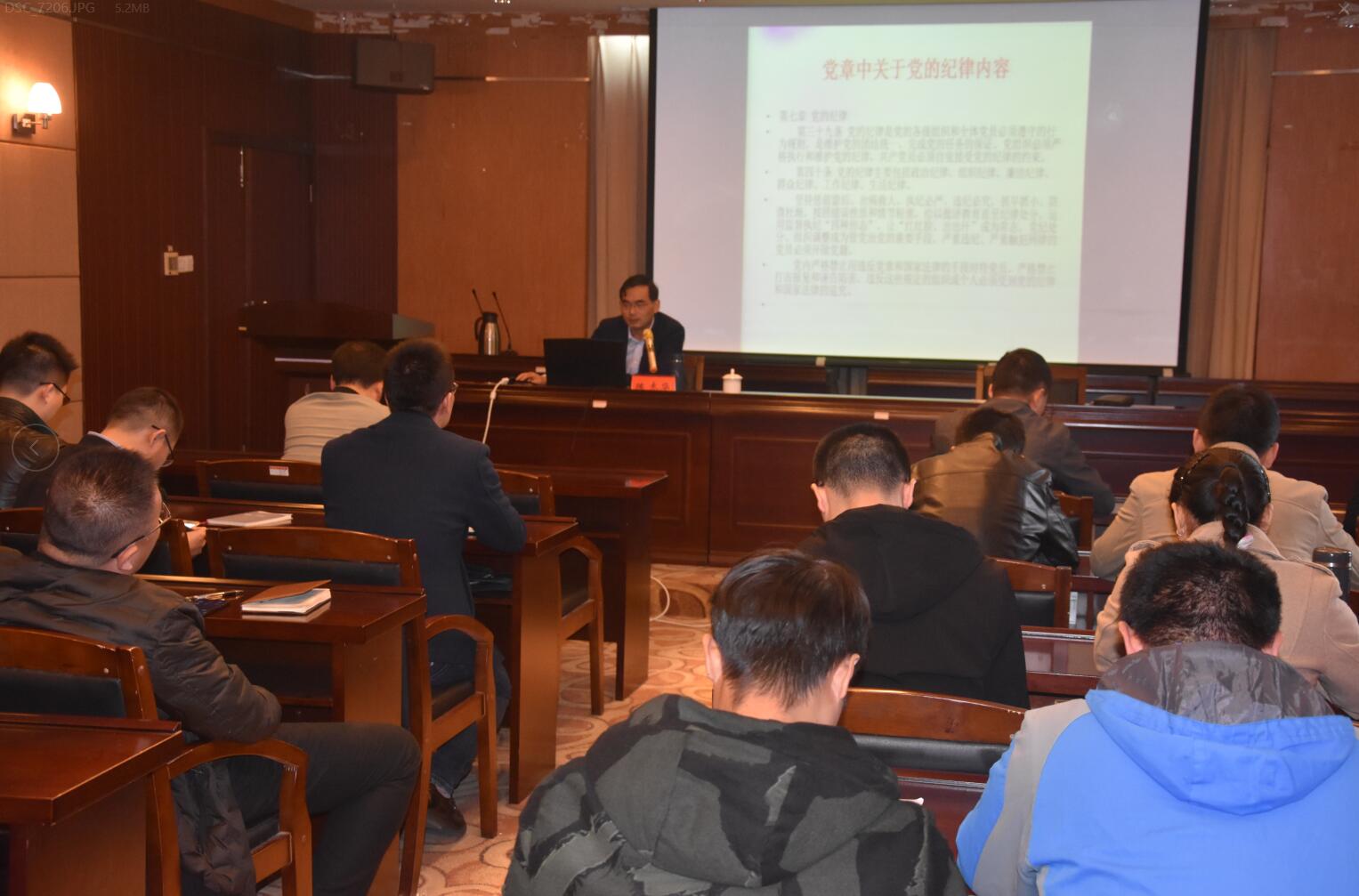10月31日下午,我院在化工楼重点实验室报告厅举行法纪教育学习月专题党课。学院党委书记陈志华主讲,学院教工党员近50人参加。