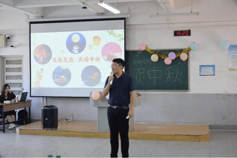 活动开始,由王俊老师发表中秋致辞:“中秋节,一个承载着团圆与思念的传统节日,它不仅是我们中华民族文化宝库中的瑰宝,更是连接心与心的桥梁。在这个特殊的日子里,或许你们中的许多人是第一次远离家乡,独自在外过中秋。但请相信,学校就是你们温暖的第二个家,这里的老师、同学都会像家人一样,给予你们关心与支持”,表达了对新生的关怀和祝福。