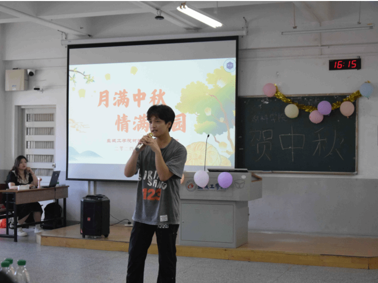 接下来是新生们带来的才艺表演和游戏环节。首先,B金属231班高澍生同学带来的独唱《于是》,鼓励同学们勇于挑战困难。B能材241班王菲同学带来的舞蹈《心跳光谱》表现了青春的活力勇气和梦想。接着由B材化243班杨静同学带来的独唱《海绵宝宝》鼓励同学们在面对生活中的挑战时要保持乐观和积极。小游戏“欢乐月饼蹲”更是让同学们激动不已。随后由王婷同学带来的独唱《春风解意》表现的面对困难时的勇气和决心。最后一场游戏“中秋知识竞答”更是点燃全场,同学们争先恐后斩获奖品。由陶宇勋带来的独唱《There’s Nothing Holding Me Back》给表演画上句号。活动的最后,陈思凡老师收集家长们的祝福制作了视频更是给了同学们一个意想不到的惊喜。