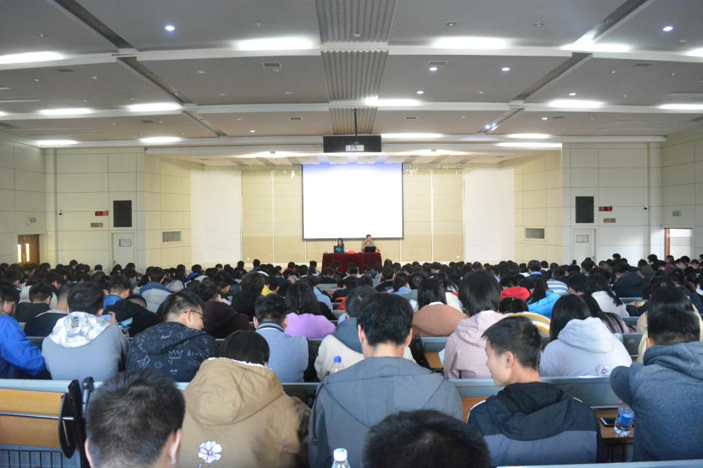 2019年11月20日下午,在北校区化工楼报告厅,材料学院特邀经管学院梅彤老师为2019级新生开展“大学生综合素养与能力提升”专题讲座。材料学院2019级新生500余人参加并认真听讲。