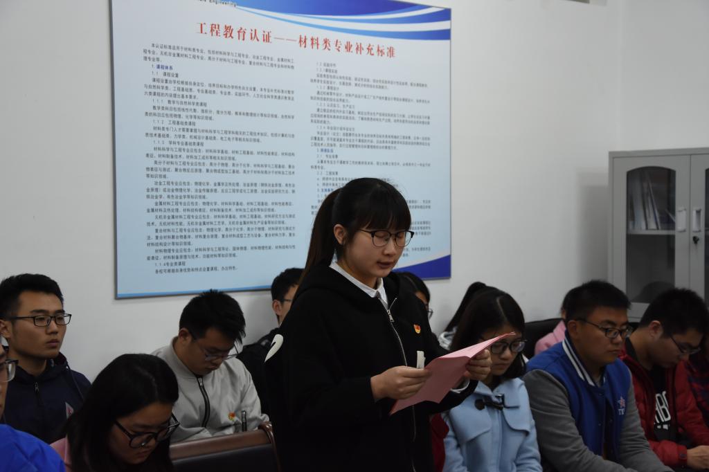 11月9日下午,在北校区知达楼材料学院会议室,材料学院学生第一党支部、学生第二党支部联合举办“两学一做”学习教育学习心得交流会,校党委书记葛世伦、党委组织部部长宋长春出席观摩,学院党委委员、学生支部全体党员和部分入党积极分子代表60多人参加。活动由学生第二党支书记林玲主持。