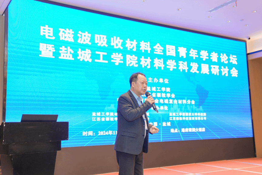 11月29日至12月2日,由我校和江苏省颗粒学会、中国复合材料学会电磁复合材料分会主办,盐城工学院材料科学与工程学院、江苏省颗粒学会青年工作委员会、盐城工学院国家大学科技园、苏颗粒科技南京有限公司承办的电磁波吸收材料全国青年学者论坛暨盐城工学院材料学科发展研讨会在盐城港府君澜大饭店举行。校党委常委、副校长王资生教授、江苏师范大学党委常委、副校长董晓臣教授、江苏省颗粒学会副秘书长李华冠、中国复合材料学会电磁复合材料分会主任委员孔杰教授、复旦大学车仁超教授、校党委常委、党委宣传部部长奚新国教授、材料学院院长罗驹华教授出席。会议设立1个主会场,3个分会场,邀请了中科院物理所靳常青教授、复旦大学车仁超教授、陆军工程大学吕绪良教授、江苏师范大学董晓臣教授、南京理工大学曾海波教授作大会特邀报告,西北工业大学于志龙教授、郑州大学范冰冰教授、南京工业大学崔升教授、济南大学赵德刚教授等53位专家学者作学术研究及学科建设分会报告。来自全国各高校教师、科研院所专家、研究生等300余人参加。