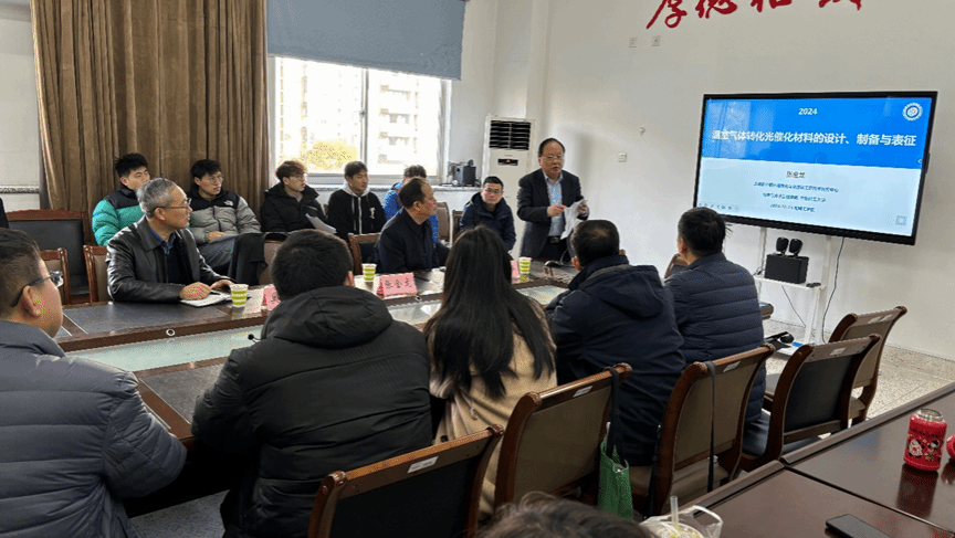 报告会上,张金龙教授以《温室气体转化光催化材料的设计、制备与表征》为题,介绍了光催化二氧化碳还原、光催化甲烷转化、光催化甲烷-二氧化碳联合转化材料的研究进展,详细分析了温室气体光催化材料的合成策略和控制因素,提出了催化转化反应中的挑战和前景的见解。在交流环节中,张金龙教授与参会师生就光催化材料的精准合成、理论设计及机理等问题进行了深入的交流和讨论。