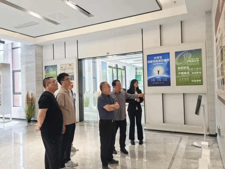 6月5日上午,海南大学姜宏教授和重庆鑫景特种玻璃有限公司陈峰、李天柱、曹怀杰一行4人应邀来校交流。材料学院院长罗驹华教授等热情接待了姜宏教授一行。罗驹华陪同姜宏教授一行参观了产教融合大楼成果展厅,介绍了盐城工学院的基本情况、办学特色、人才培养定位、产业学院发展历程、产教融合情况等,并重点介绍了材料学院的建设背景、建设思路、育人模式、学科专业设置、师资力量以及人才培养成果。