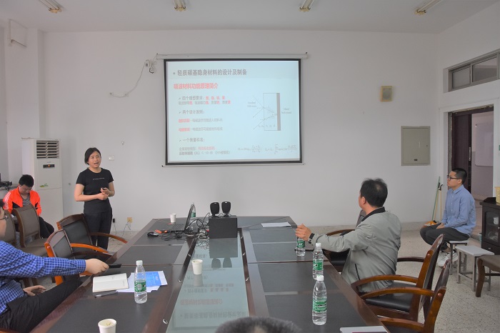 黄小萧教授以《轻质碳基材料的结构设计及应用研究》为题,详细介绍了轻质碳基材料的结构设计及其在吸波材料领域中的应用。在交流环节中,黄小萧教授与我校师生在轻质碳基材料的结构有效调控等问题上展开了深入的交流讨论。