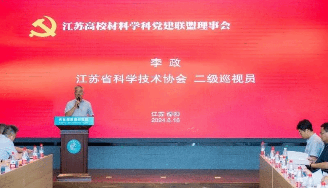 8月16日上午,江苏高校材料学科党建联盟理事会在溧阳召开,并举办党建引领产业创新发展论坛。出席江苏高校材料学科党联盟理事会的领导有江苏省科学技术协会二级巡视员李政,常州市科协党组书记、主席任洪兴,省材料学会秘书长强星以及各有关高校材料学科党建工作负责人。材料学院党委书记唐浩、副院长王金山出席了会议。江苏高校材料学科党建联盟理事会由南京工业大学材料科学与工程学院党委书记高树军主持。
