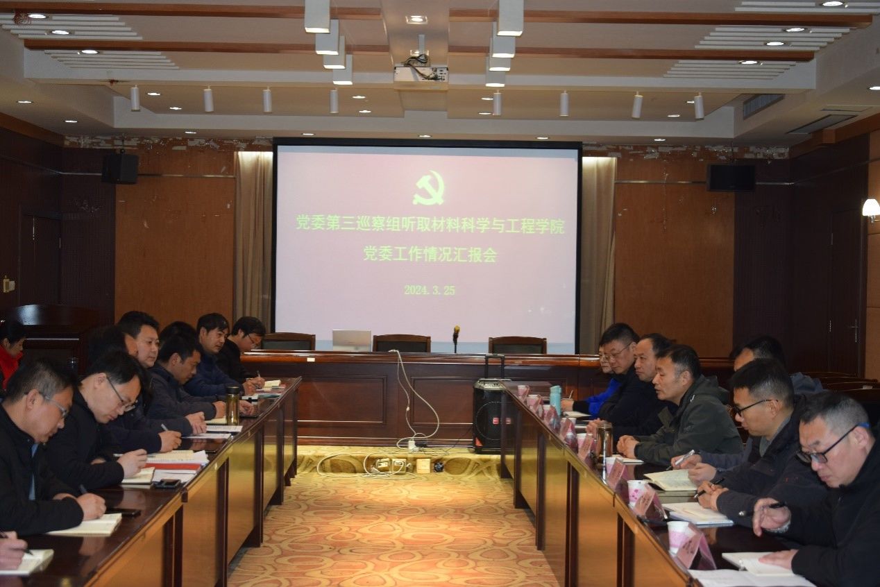 3月25日上午,根据校党委统一部署,党委第三巡察组听取材料科学与工程学院党委工作情况汇报会在重点实验室报告厅召开,党委常委、党委统战部部长、党委第三巡察组组长姚军,党委第三巡察组、意识形态专项检查组全体成员,材料科学与工程学院领导班子成员、全体党委委员、支部书记,科级以上干部、专业系主任、实验中心主任及全体辅导员参加会议。会议由党委第三巡察组副组长陶应军主持。
