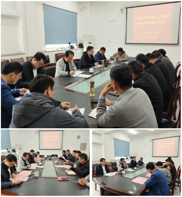 会上,学院领导分别与各科室负责人、专业系主任签订了《全面从严治党与党风廉政建设责任书》、《意识形态和政治安全工作责任书》、《安全稳定工作责任书》。