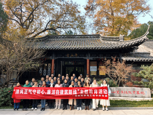 为进一步强化教师的廉洁自律意识,坚守初心使命,12月7日,材料学院组织开展“清风正气守初心,廉洁自律筑防线”主题教育活动,赴扬州市平山堂廉政教育基地和中国大运河博物馆开展现场教育活动。学院党委书记唐浩、院长罗驹华、副院长刘超、王金山、党委副书记温崇明等教师代表参加。