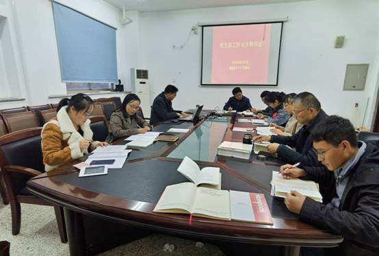 11月26日下午,在北校区知达楼第一会议室,我院召开党支部工作业务培训会。会议由学院党委书记陈志华主讲,学院四个党支部委员会全体成员参加。