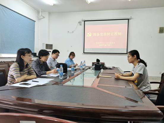 6月2日上午,在北校区知达楼第一会议室,我院召开预备党员转正答辩大会。校关工委常务副主任施鲁莎、学院党委副书记朱凌、学生党支部书记担任评委,19名预备党员参加转正答辩。