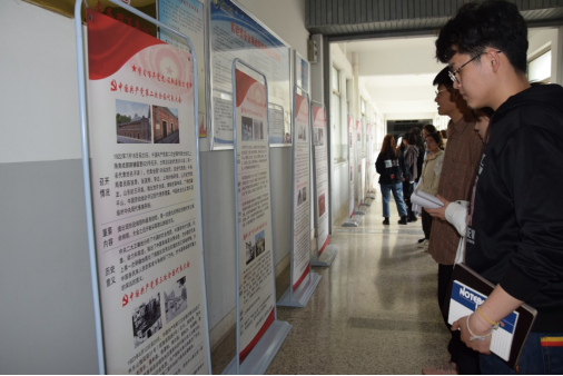 4月21日中午,材料学院全体学生党员在学生第二党支部书记郭群娜老师的带领下,参观学院党委制作的《中共一大至十九大党代会简史》展板。