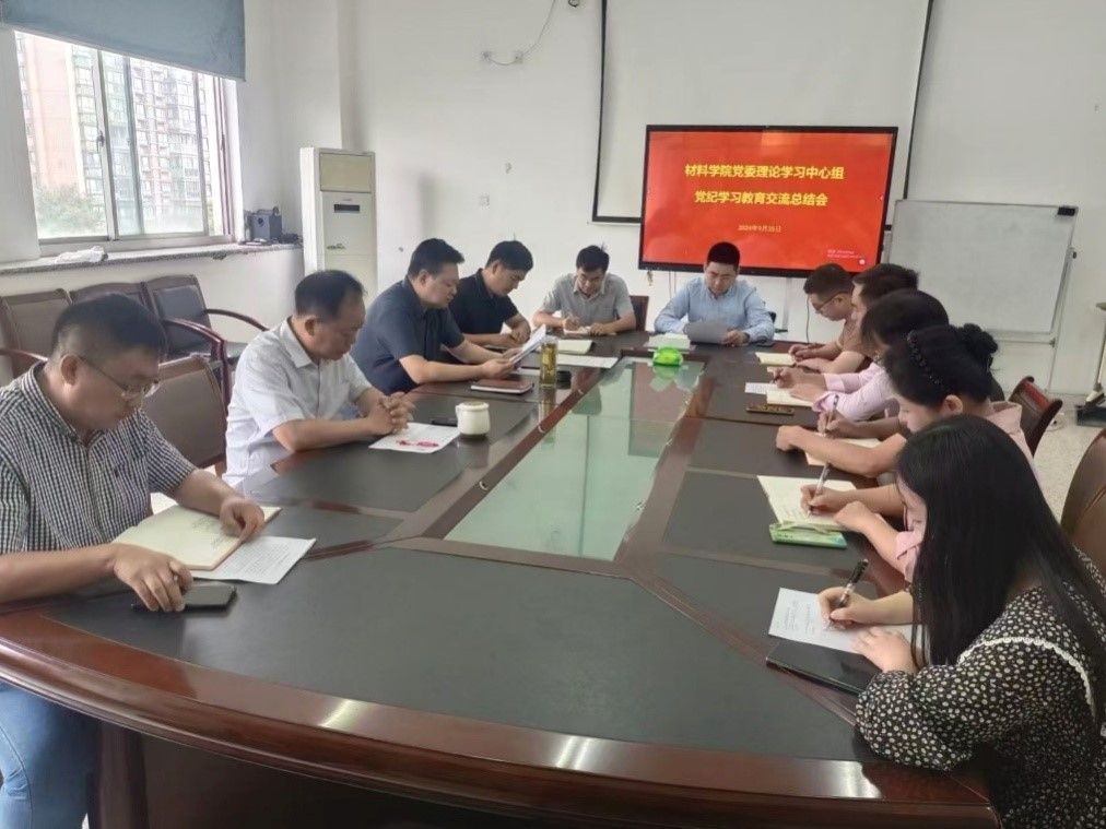 9月25日上午,在建军东路校区知达楼B306会议室,材料学院党委理论学习中心组举行9月份专题学习会暨党纪学习教育总结交流会,党委书记唐浩主持会议,理论学习中心组全体成员参加。