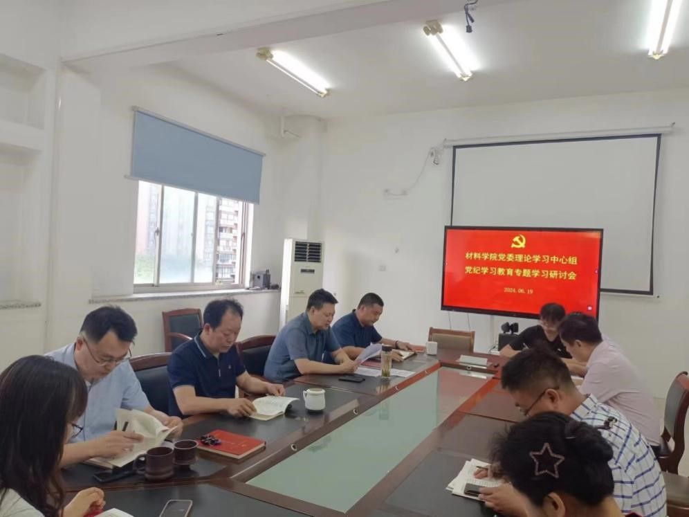 6月19号上午,材料学院党委理论学习中心组在学院第一会议室召开党纪学习教育专题学习会,会议由学院党委书记唐浩主持,党委理论学习中心组成员参加。