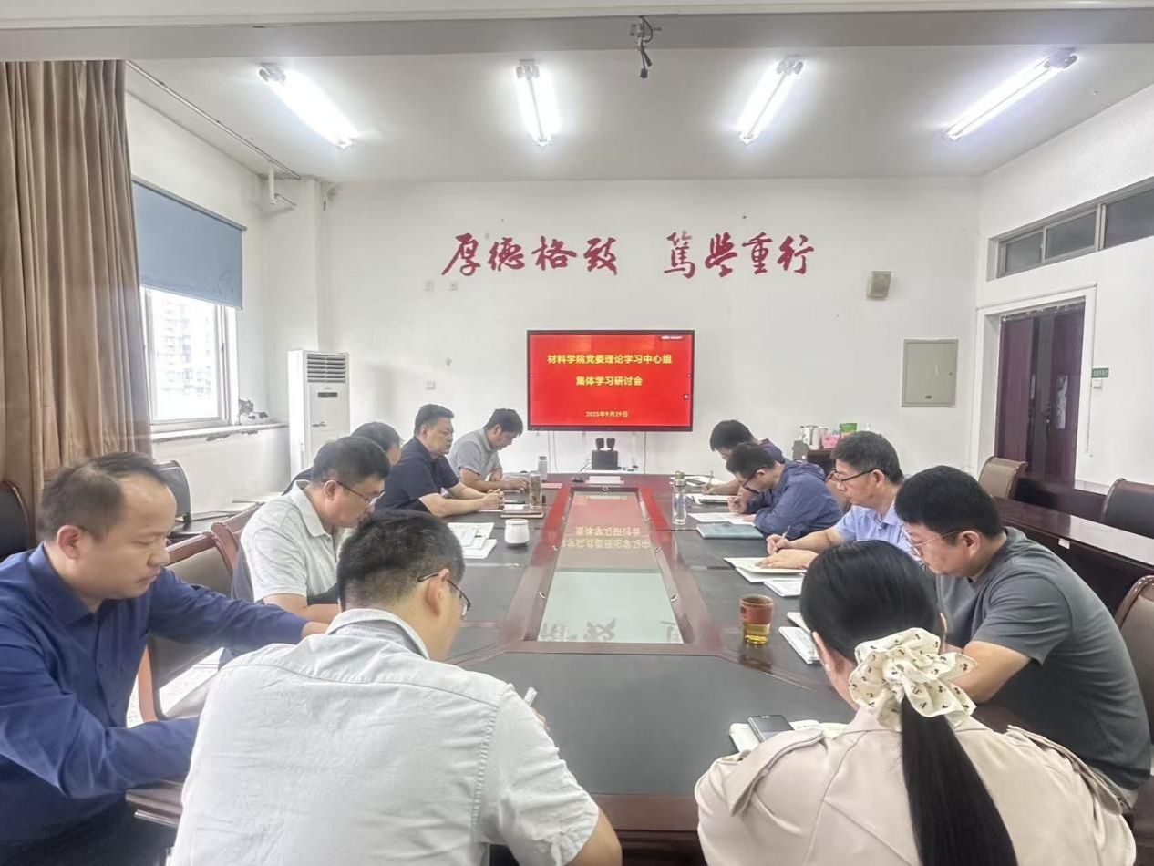 9月29日上午,材料学院党委理论学习中心组在学院第一会议室举行集中学习研讨会,围绕抗战精神深入讨论学习。学院党委书记唐浩主持会议,院长罗驹华、副院长刘超、王金山、学院党委副书记温崇明等理论学习中心组成员参加会议。