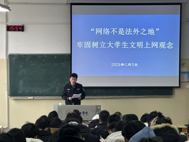 为引导同学们正确利用网络,做文明的网络使用者。1月5日下午,我院邀请亭湖区东城派出所张杨警官,开展了”网络不是法外之地 牢固树立大学生文明上网观念”的主题班会。班会由大一辅导员朱越主持,2023级部分学生参加。