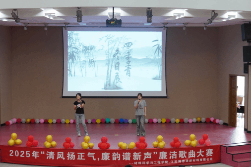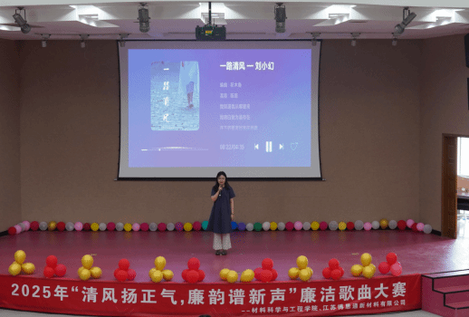 为全面贯彻习近平总书记关于加强廉洁文化建设重要论述精神,推进落实党中央和省委关于加强新时代廉洁文化建设的要求,弘扬廉洁文化,加强师生的廉洁自律意识。6月11日下午,材料学院于知达楼五四报告厅成功举办了廉洁歌曲大赛,材料学院党委书记唐浩、副院长刘超、江苏博思通新材料有限公司的企业员工代表及两百多名学生出席观摩。材料学院党委副书记温崇明、江苏博思通党支部书记、品控中心万建航主任、学工办主任王俊、团委副书记袁梅担任评委。