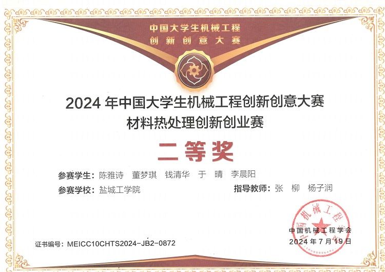 近日,材料科学与工程学院收到第十届中国大学生材料热处理创新创业获奖证书。张柳、杨子润两位老师指导的学生陈雅诗、董梦琪、钱清华、于晴、李晨阳获全国本科组二等奖,张从林、杨子润两位老师指导的学生郭方强、何庆召、张坤友、陈飞、卜美庄获全国研究生组二等奖,这是我校参赛以来首次同时获得全国本科组和研究生组二等奖。此外,杨子润、柳昭慧、蒋穹等老师指导的队伍分别获华东赛区金奖1项和银奖2项。