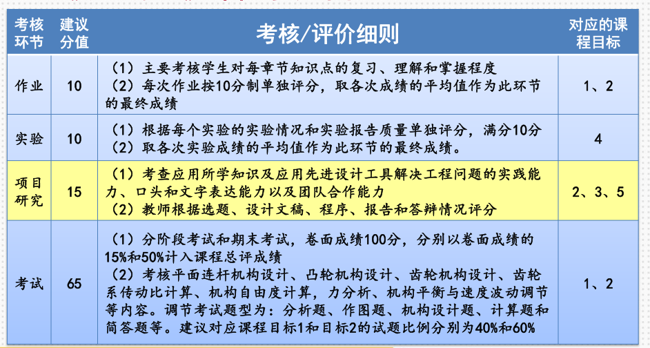 表1上海交通大学《机械原理》课程考核环节