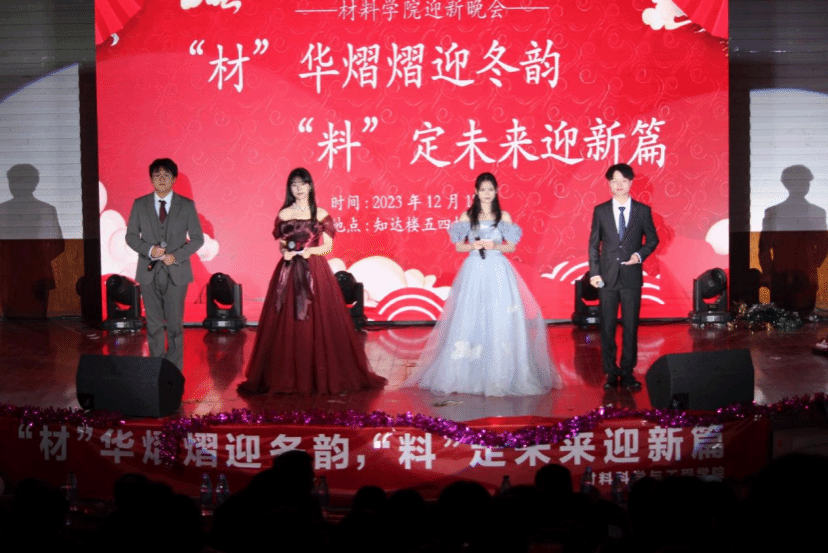 为了给同学们创造一个展现自我、释放才艺、增进友谊的舞台。12月17日晚,材料学院在建军路校区五四报告厅举行“材华熠熠迎冬韵,料定未来迎新篇”迎新晚会。学院党委副书记朱凌,学院团委副书记王俊,部分专职辅导员以及全体大一新生近500余人参与本次活动。