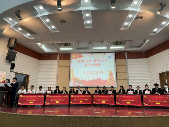 为迎接党的二十大胜利召开,引导广大青年学生加强党史学习,砥砺青春使命,10月12日下午,在北校区五四报告厅,材料学院召开“青春心向党,喜迎二十大”党史知识竞赛。校党委常委、宣传部部长、材料学院院长奚新国、党委书记唐浩、江苏博思通新材料有限公司董事长、总经理于浩、学工办负责同志、全体学生党员、发展对象、入党积极分子共计100余人参与。