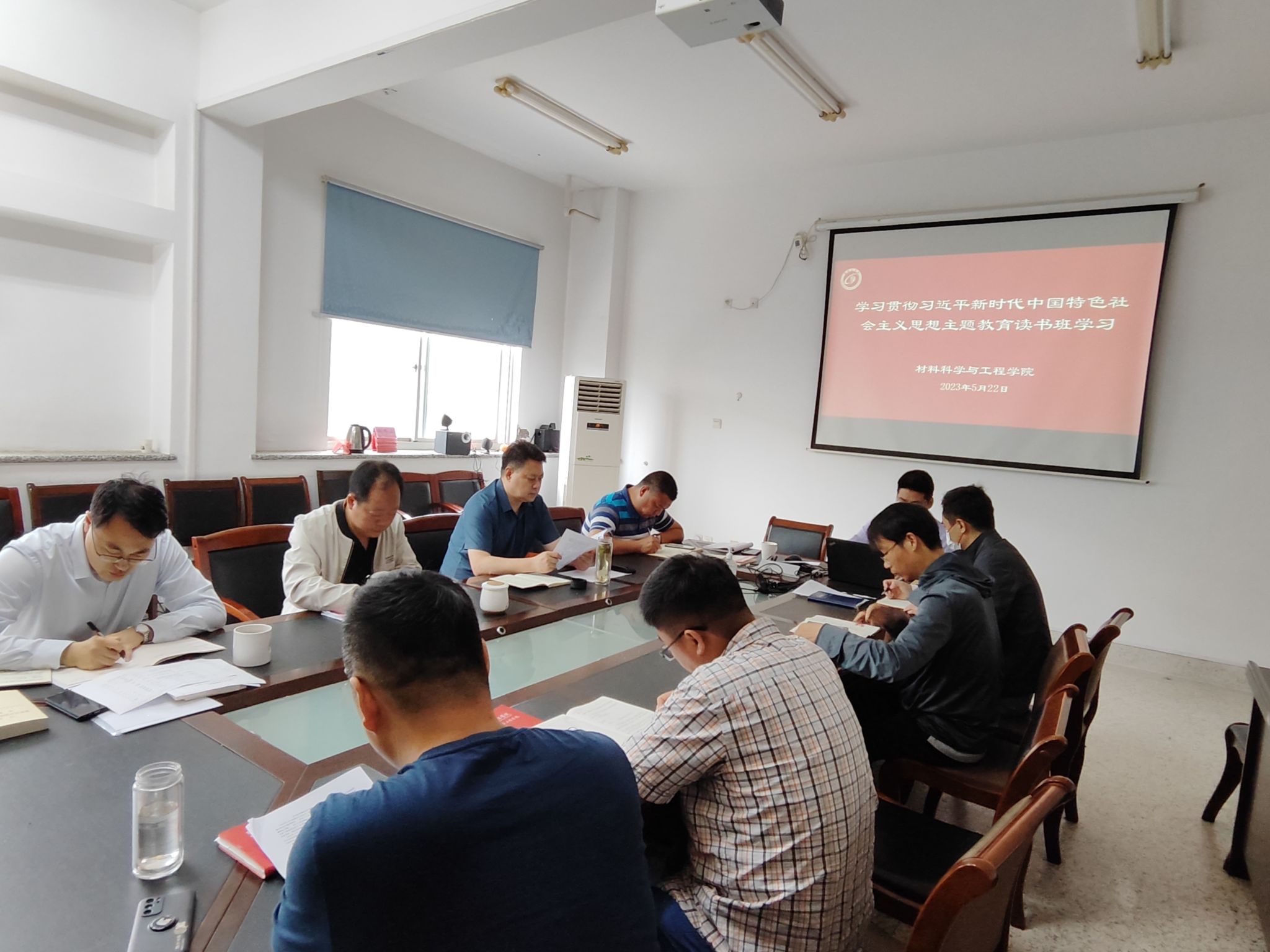 5月22日,材料学院党委中心组在学院知达楼B314会议室召开学习贯彻习近平新时代中国特色社会主义思想主题教育读书班学习活动,会议由党委书记唐浩主持。