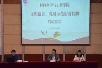 10月6日晚上,材料学院在建军路校区五四报告厅举办文明宿舍、党员示范宿舍挂牌启动仪式。学院党委副书记朱凌、学工办主任郭群娜、学院团委学生会主席团全体成员、学院团委学生会管理大部全体成员、四个年级全体班长、团支书以及大三全体党员参加本次仪式。会议由学院团委副书记王俊主持。