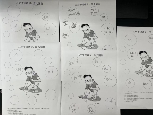 辅导员是高校开展大学生思政工作的骨干力量,是高校大学生日常思政教育和管理工作的组织者、实施者和指导者。在当前疫情特殊时期,更加重了辅导员的工作压力。韦处长通过呼吸调整法、冥想放松法、压力管理练习——压力圈图等方式带领在场的老师们讲出自己内心的压力,用团体讨论的方式找出大家存在的共同共通的烦恼和焦虑。