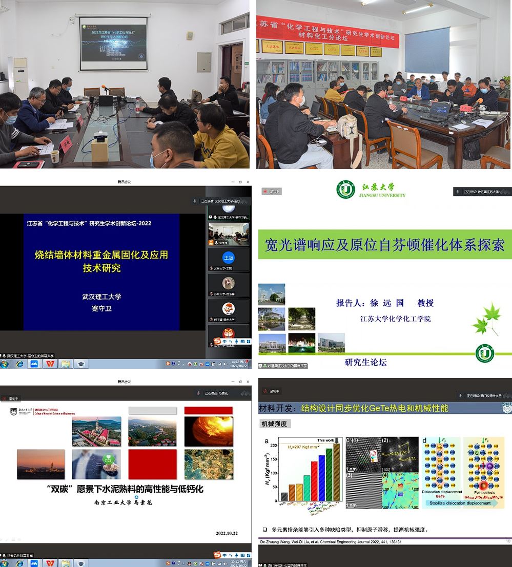10月22日,2022江苏省研究生“化学工程与技术”学术创新论坛材料化工分论坛在北校区知达楼B314成功举办。本论坛得到武汉理工大学、南京工业大学、南京理工大学、苏州大学、扬州大学、江苏科技大学等10余所高校硕博研究生的广泛关注和积极投稿参与,共征集论文投稿31篇。本次论坛围绕材料化工领域的最新研究成果及发展趋势展开学术交流。论坛由学校党委常委、校宣传部部长、材料学院院长奚新国主持,材料学院副院长罗驹华、无机非金属材料专业系主任刘超、高分子材料专业系主任王金山担任评审专家,来自全国10余所高校的100余名师生参加了本次论坛。