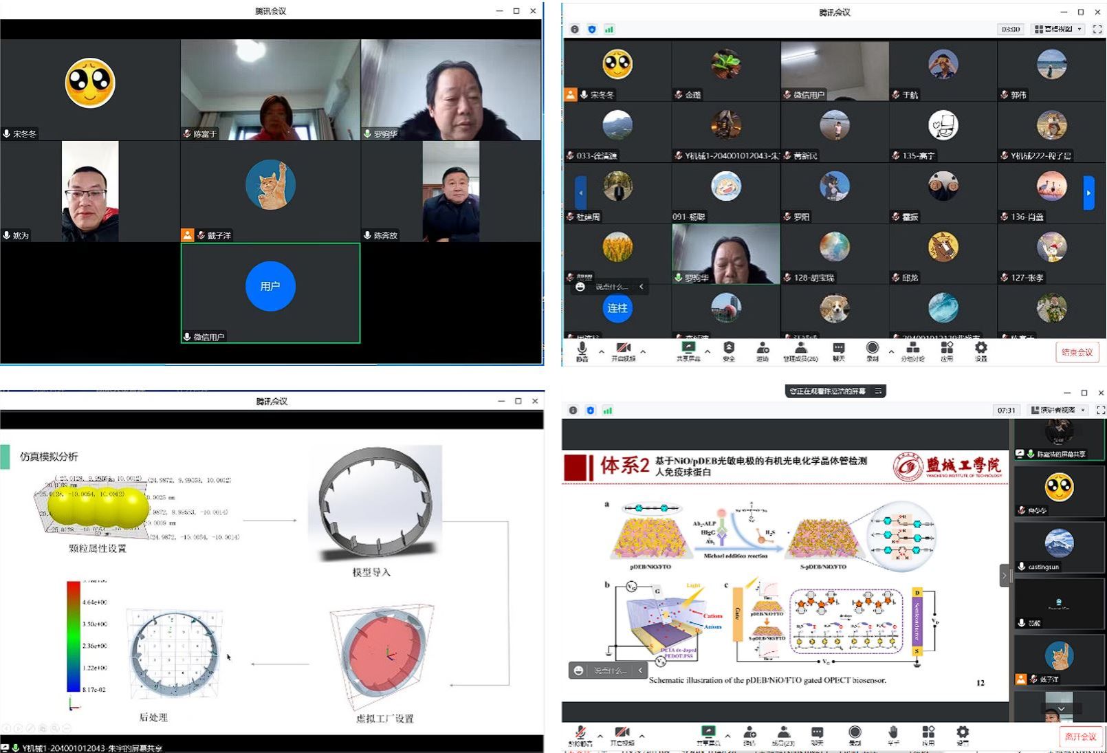 28名2020级研究生分别从研究背景、国内外研究进展、研究内容和方案、创新点、课题研究进展及成果、后续安排等方面进行了汇报。专家针对课题创新性、课题研究完成情况及获得成果等方面进行了提问和交流,并对不足之处提出了改进建议。