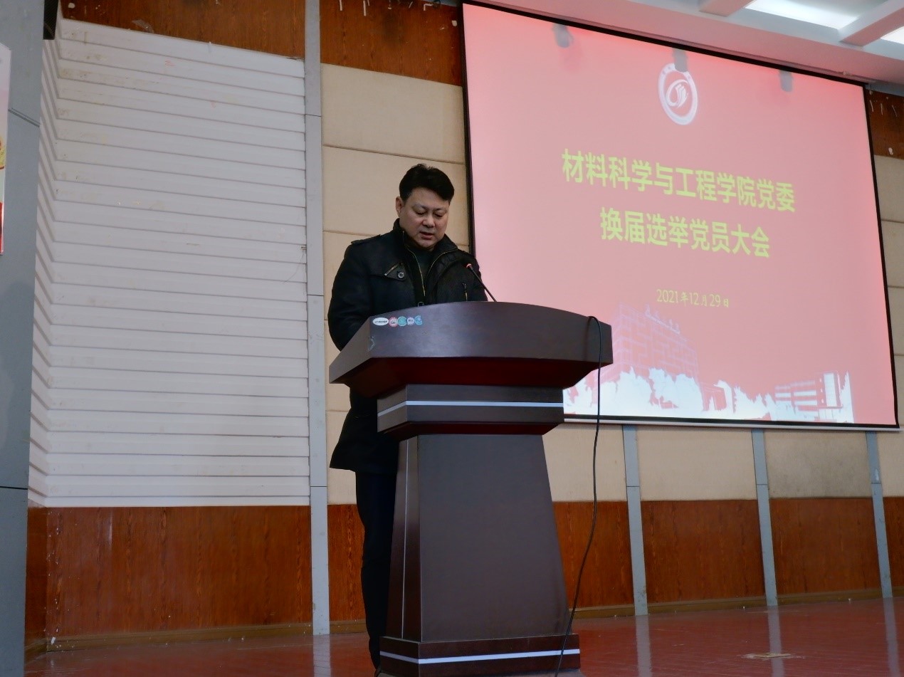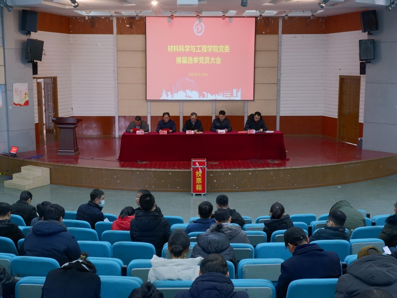 根据校党委《关于做好基层党委(总支)换届选举工作的通知》(盐工委〔2021〕70号)文件要求,12月29日下午,材料科学与工程学院党委在北校区五四报告厅召开党委换届大会,选举新一届党委委员。大会由党委书记唐浩主持,新一届党委委员候选人出席会议,党委常委、副校长王资生到会讲话。