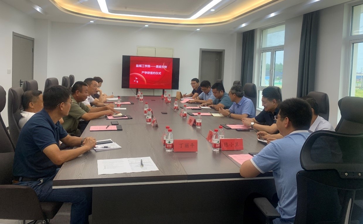 林荣业代表公司对材料学院的来访表示热烈欢迎。他表示,随着公司在盐阜大地上扎根与发展,属地高校,特别是盐城工学院材料学院已与康庭生物公司形成了良好的校企产学研合作基础。此次产学研交流与签约仪式,将是康庭生物公司与材料学院深化合作与交流的基础与开端。 对企业目前的生产经营业绩情况进行了简要介绍,并对于双方前期合作取得的成果给予肯定,期待双方能够继续在产品研发、项目申报、人才培养等方面深化合作,实现优势互补、相互促进、共同发展。会上,李军帅介绍了康庭生物公司的历史、发展过程与远景规划。