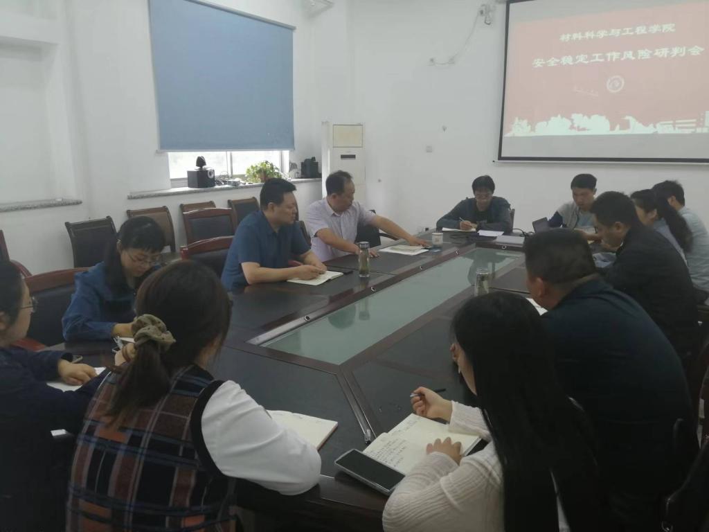 9月27日下午,材料学院召开安全稳定工作风险研判会,传达学习9月26日学校安全稳定工作会精神,重点对网络舆情、校园安全、师生心理健康、常态化疫情防控、电信网络诈骗等方面进行分析研判,部署落实下一阶段学院校园安全稳定重点工作。学校党委宣传部部长、材料科学与工程学院院长奚新国对学院安全稳定工作提出明确要求,学院党委书记唐浩主持会议,副院长罗驹华,专业系主任,支部书记、各科室负责人、辅导员代表等参加会议。