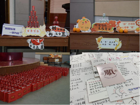 会议结束后,学院领导为考研学子发放暖心“考研加油包”:心想事“橙”、“苹”安上岸、“牛”气十足、“士力架”倍、“棒”上有名、好运“旺旺”、“包”你上岸以及考研专用文具袋。每一份礼包中都有一份祝福卡片,祝愿每一位考研学子取得优异成绩,升入理想学府,这些卡片或出自学院领导老师之手,或出自学弟学妹之手,设计精美、文字感人。