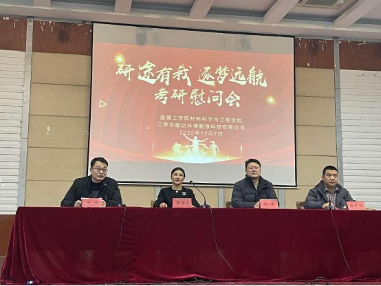 12月7日下午,在北校区五四报告厅,材料学院开展“研途有我,逐梦远航”考研慰问会。学院党委书记唐浩、江苏吉能达环境能源科技有限公司总经理曹海宁、副院长罗驹华、副院长诸华军出席活动,毕业班辅导员及2023届考研学生参加。党委副书记朱凌主持会议。