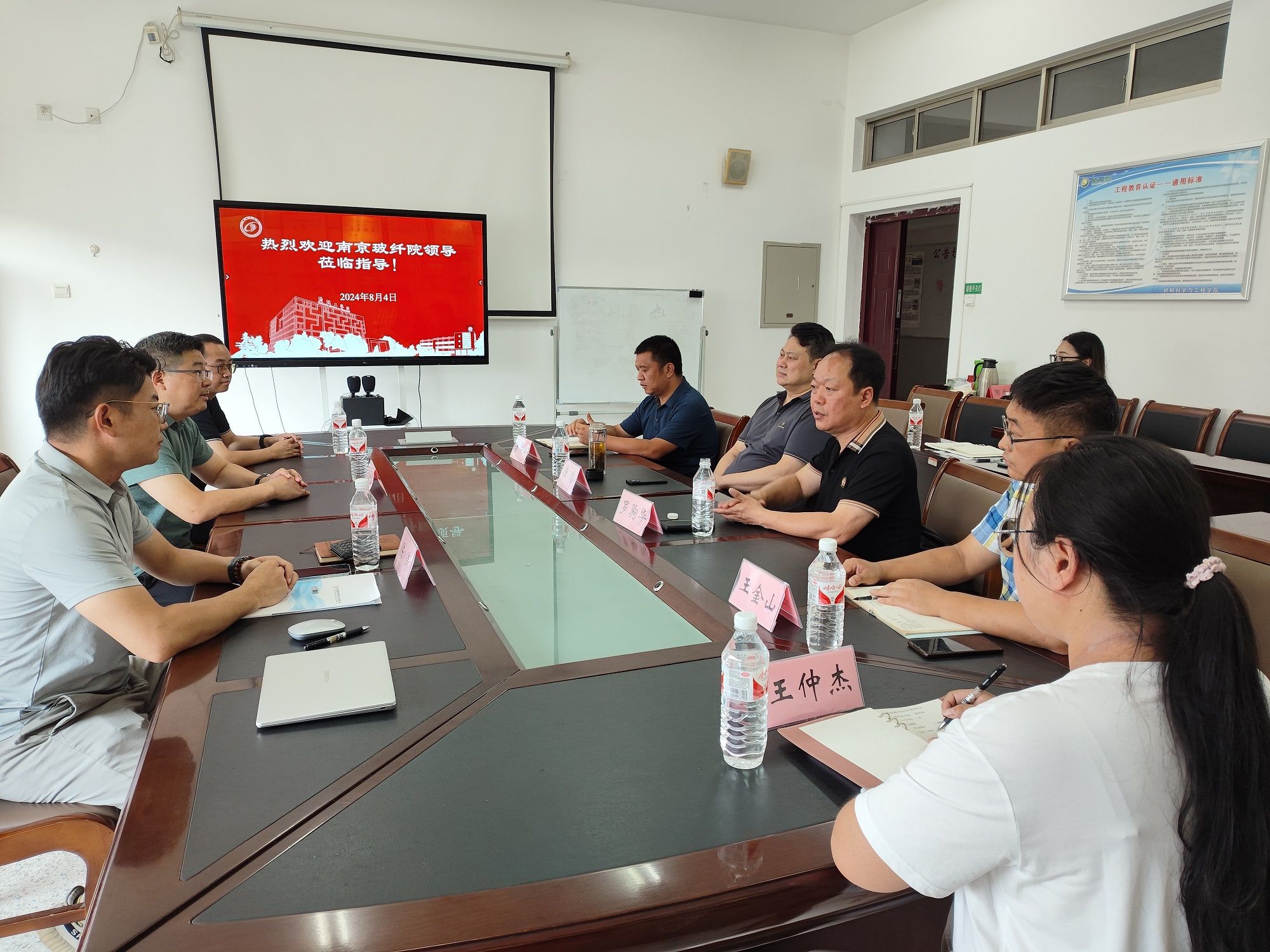 2024年8月4日下午,南京玻纤院高硅氧产业负责人刘铁军一行来材料学院开展校企合作交流。材料学院党委书记唐浩、院长罗驹华、研究生院副院长诸华军、学院副院长王金山及相关教师参加交流。