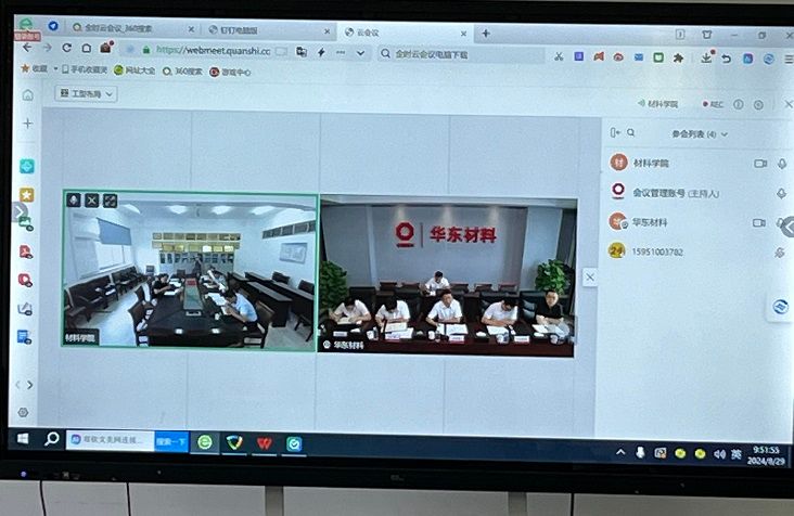 为探索“校企一体,产教融合”的新型育人模式,8月29日上午,材料学院与华东材料有限公司开展合编产教融合教材进行线上交流会。材料学院院长罗驹华、副院长王金山、华东材料有限公司商混管理部副总经理潘金敢、党委组织部(人力资源部)高级经理刘广辉等参加线上交流会。