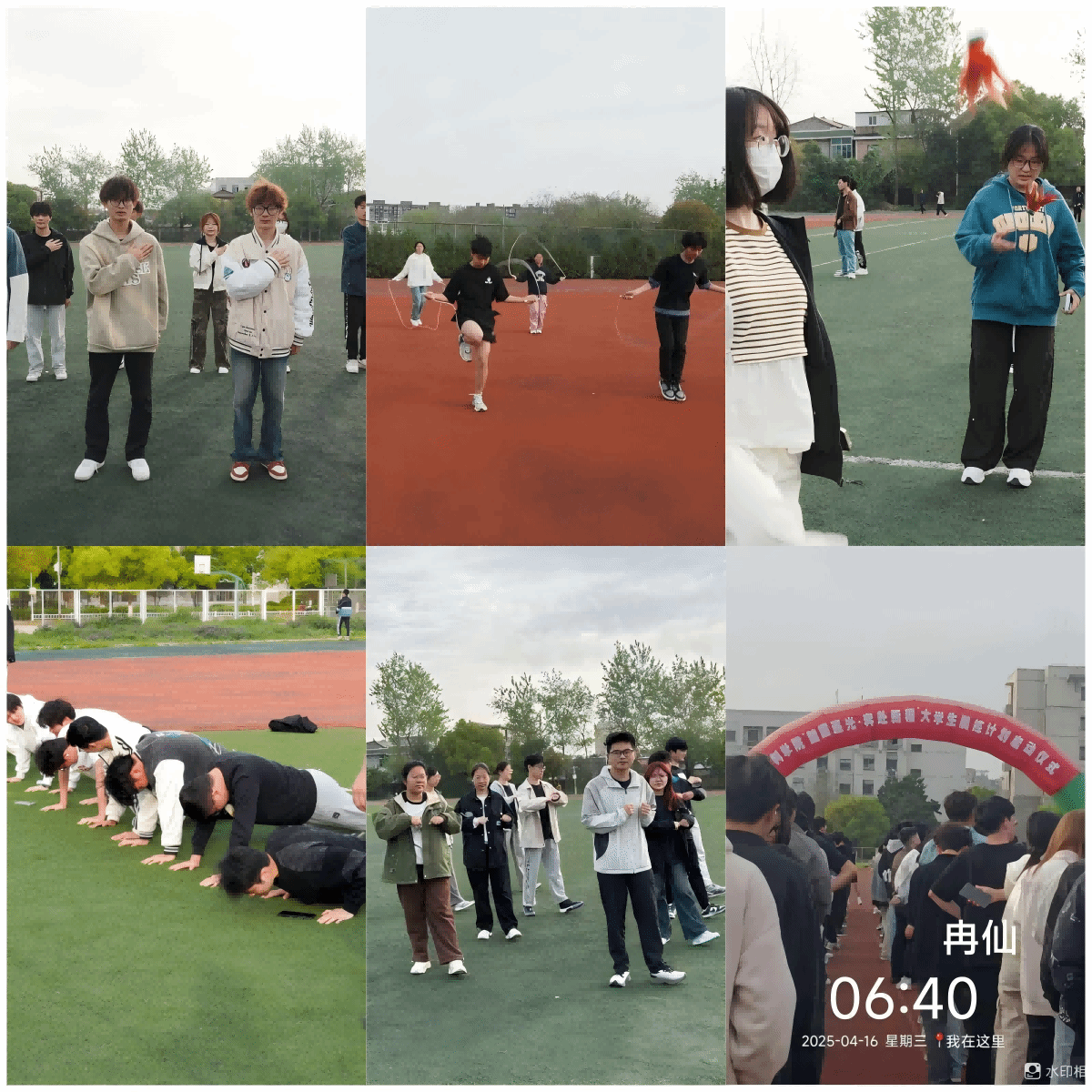 唐浩对全体学生提出殷切期望,鼓励大家以积极饱满的态度参与晨练,将持之以恒的精神转化为个人成长进步的强大动力,宣布晨练正式启动。在院旗的引领下,学生们沿着足球场跑道有序开跑,晨练的项目丰富多彩涵盖跳绳、踢毽子、踢足球、俯卧撑等运动项目。