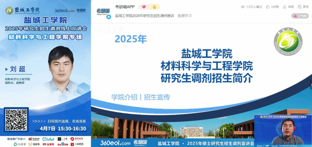 4月7日,刘超在360教育直播平台开展研究生调剂招生线上宣讲会,向广大考生详细介绍了我院的学科建设、师资队伍、教学实验设施以及科研成果等情况。着重讲解了我院2025年硕士学位点的调剂政策、招录条件、复试要求等内容。宣讲会后期,刘超针对考生提出的关于调剂条件、调剂专业及调剂名额等问题进行了耐心解答。
