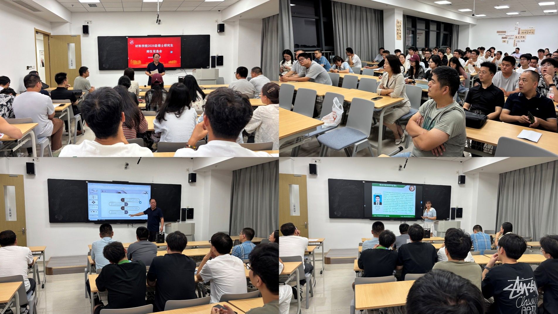 9月16日晚,材料学院交通运输、材料科学与工程、纳米科学与工程三个硕士学位点分别在盐龙湖校区405、406、408教室召开2025级硕士研究生师生双选会。材料学院院长罗驹华教授、团委书记杨秀丽教授、吴其胜教授、郭伟教授、王金山教授、张峰教授、王成双教授、廖明军教授等研究生导师,科研团队代表及全体2025级研究生参会,学院副院长刘超教授主持会议。