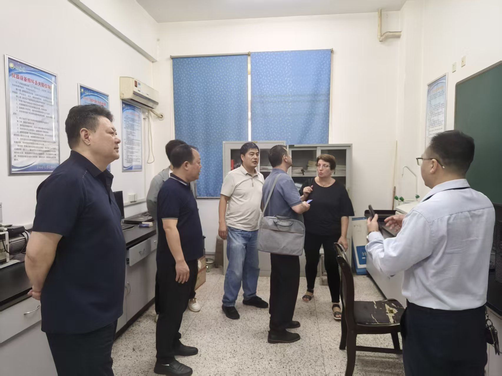 考察期间,安德烈·布克托夫院士一行先后参观了学院热分析实验室、光谱分析实验室、高性能金属材料实验室。参观过程中,学院相关团队负责人详细介绍了各实验室的研究方向、特色成果以及在基础研究和产业化应用方面取得的进展。