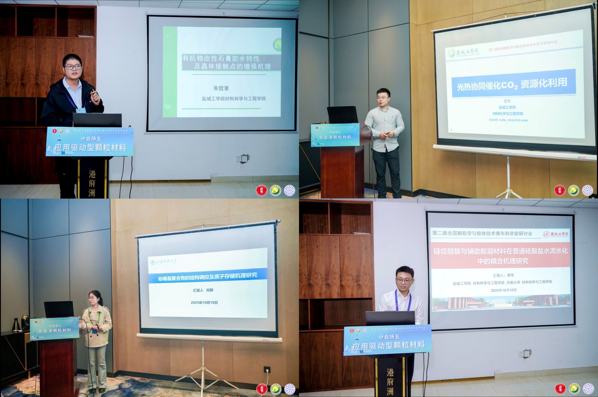 材料学院深度参与会议组织与学术交流工作,共有40余位教师参会。学院教师积极参与分会场研讨,其中沈璐、朱哲誉、刘行、王可、李敬迎、蒋军等6位教师分别作题为“微纳米材料改性环氧树脂防腐涂料的研究”、“二水石膏晶体接触点增强机理及其改性研究”、 “光催化复合材料的制备及其光催化氧化还原反应的应用”、“光热协同催化 CO2资源化利用”、“水系锌金属电池负极表界面工程研究”、“链烷醇胺与辅助胶凝材料在普通硅酸盐水泥水化中的耦合机制研究“的分会场报告,围绕颗粒材料在能源、环境、制造等领域的应用展开深入交流,相关学术观点与研究成果获得参会专家认可,充分展现了材料学院在颗粒学与粉体技术领域的科研实力。