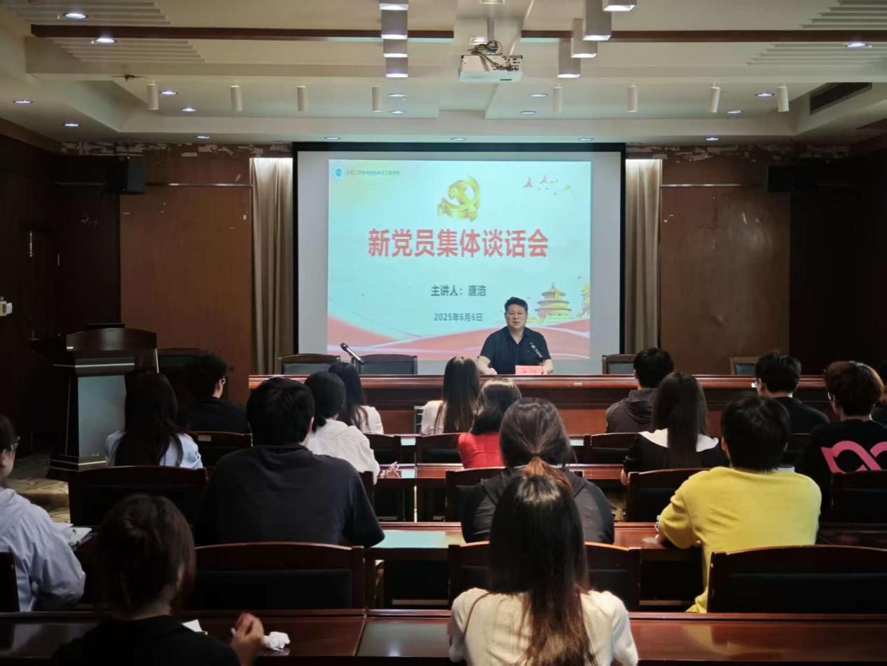2025年6月6日,学院在化工楼重点实验报告厅召开新党员集体谈话会,与新发展党员展开深入交流。学院党委书记唐浩主讲,陈思凡老师主持。