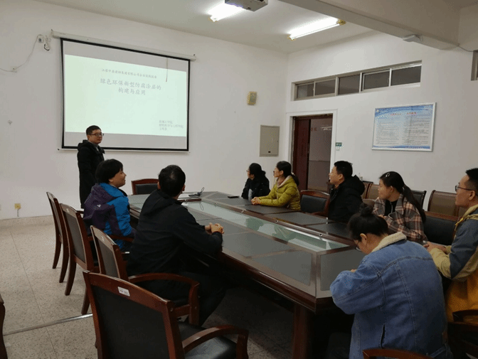 11月10日,材料学院教师王明东博士在知达楼B314会议室作题为“绿色环保新型防腐涂层的构建与应用”报告,分享其在江苏中鼎建材集团有限公司的企业实践经历。报告由王金山副院长主持,专业教师20余人参加。
