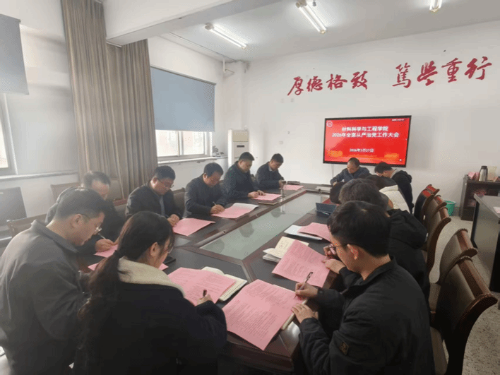 3月27日上午,材料科学与工程学院在第一会议室召开2026年全面从严治党工作会议。学院党政班子成员、党支部书记、责任科室负责人、专业系(教研部、实验中心)主任出席会议。学院党委书记唐浩主持会议。