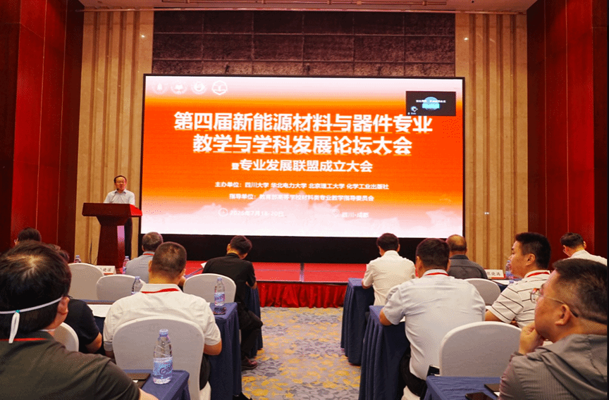 7月18日至20日,由教育部高等学校材料类专业教学指导委员会指导,四川大学、华北电力大学、北京理工大学和化工出版社等联合主办的“第四届新能源材料与器件专业教学与学科发展论坛暨专业发展联盟成立大会”在成都召开。会议汇聚了来自中南大学、武汉理工大学、西北工业大学等全国60所高校的院长、学科负责人、一线教师和和部分企业代表120多人,聚焦学科发展、一流专业建设、人才培养模式创新、课程和教材建设、AI赋能、产教融合等议题开展了深度探讨,正式成立新能源材料与器件专业发展联盟。教育部材料类专业教学指导委员会秘书长耿林在线讲话。材料学院副院长王金山和新能源材料与器件专业负责人戴子洋参加了此次会议。
