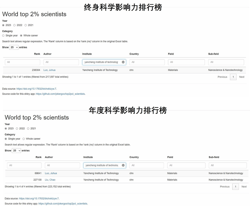 全球前2%顶尖科学家榜单是基于Scopus数据库的引用数据系统分析,从总引用量、Hirsch H-index、共同作者修正的Schreiber Hm-index、单独作者、单独或者第一作者等6个关键因素评分,根据“生涯影响力”和“年度影响力”,从近700万名科学家中遴选出世界排名前2%的科学家,涵盖了22个领域和174个子领域,为科学家长期科研表现提供了一个衡量指标,能够更客观、更真实地反映科学家的影响力。入选该榜单,意味着该学者在其研究领域具有较高的世界影响力。