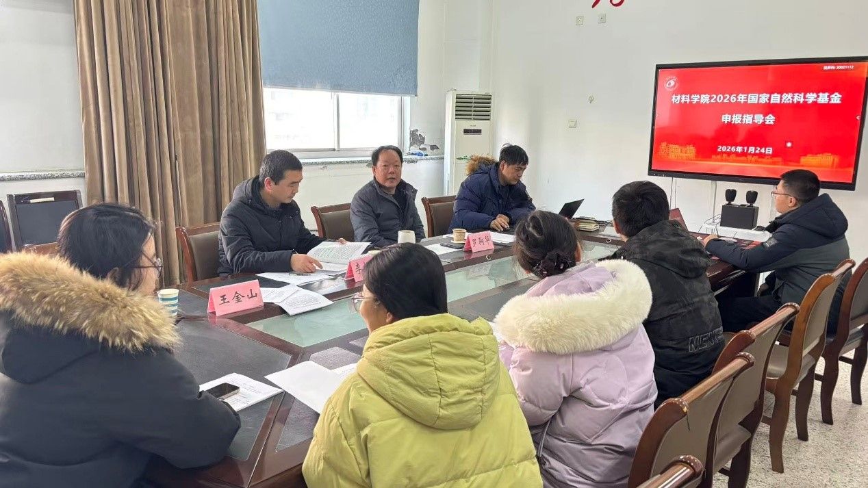 1月24日,材料学院在知达楼B314会议室举办2026年国家自然科学基金专家指导会。本次会议邀请天津工业大学副校长张雪峰教授、盐城工学院李恒业教授担任指导专家,会议由材料学院院长罗驹华主持,副院长刘超、王金山出席,学院拟申报基金教师10余人参会。